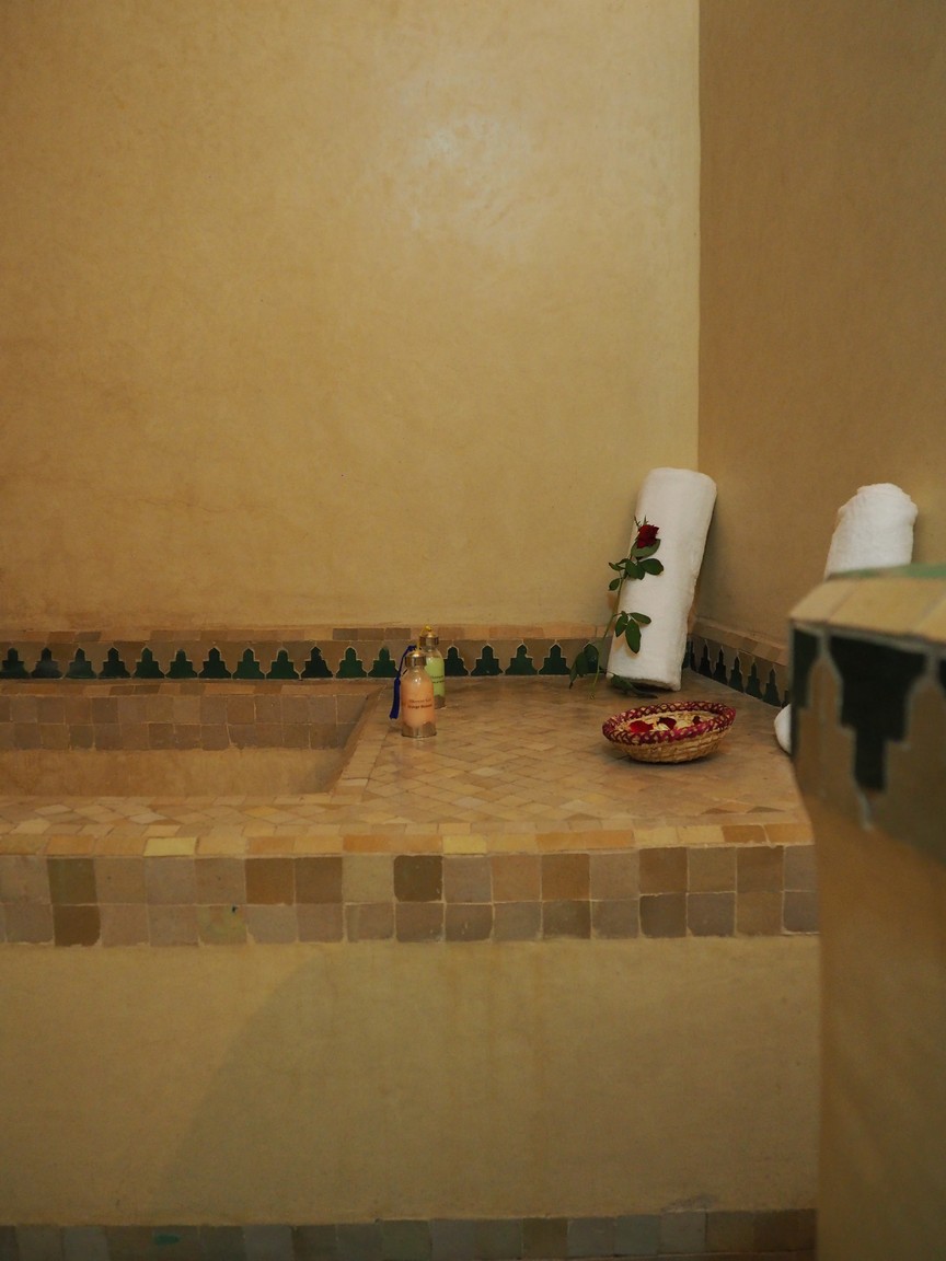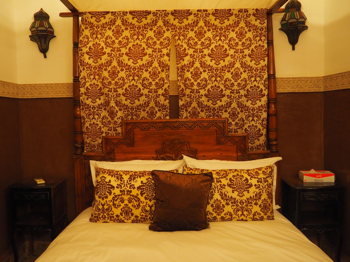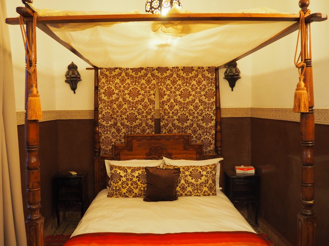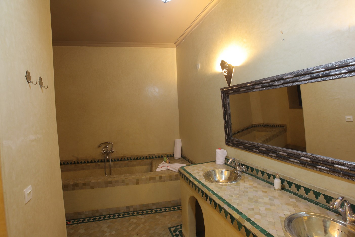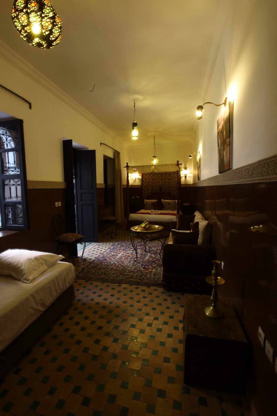 Située à l’étage, , cette suite s’orne de tonalités chocolatées. On y pénètre par un confortable salon aux coussins moelleux. Dans cette suite du Riad, la salle d’eau se compose d’une baignoire double et de deux éviers, en tadelakt ocre. Cette chambre est dotée d’un grand lit double. La nuit tombée sur la Médina de Marrakech, de subtils jeux lumineux confèrent au Riad une magie étonnante.