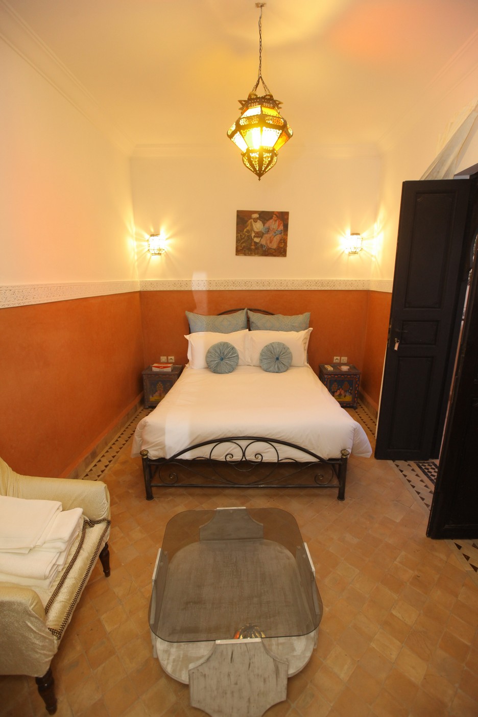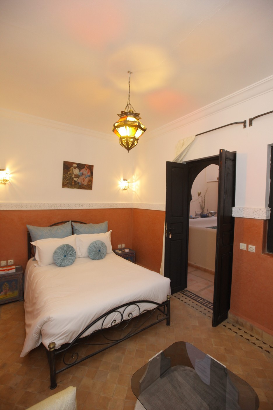 Situé sur la terrasse du Riad, la chambre Polux vous fera profiter de son ensoleillement incroyable en journée, et d’une vue magnifique en soirée.